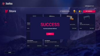 The Xsolla Web Shop is integrated directly inside the game as an in-app store and is not an external standalone shop. Players can access the store through the in-game menu to purchase currency, items, and bundles using the integrated system.